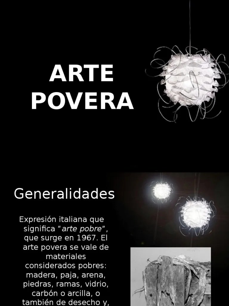08.07.2014 · el arte povera surgió en italia en 1967, a partir de dos exposiciones que se realizaron en turín, en las que participaron varios artistas de esta modalidad. . Recibió esta denominación de parte del crítico germano celant, ya que se utilizaban materiales considerados 'pobres', de muy fácil obtención, como madera, hojas o rocas, vajilla, placas de plomo o cristal, vegetales, telas, carbón o…